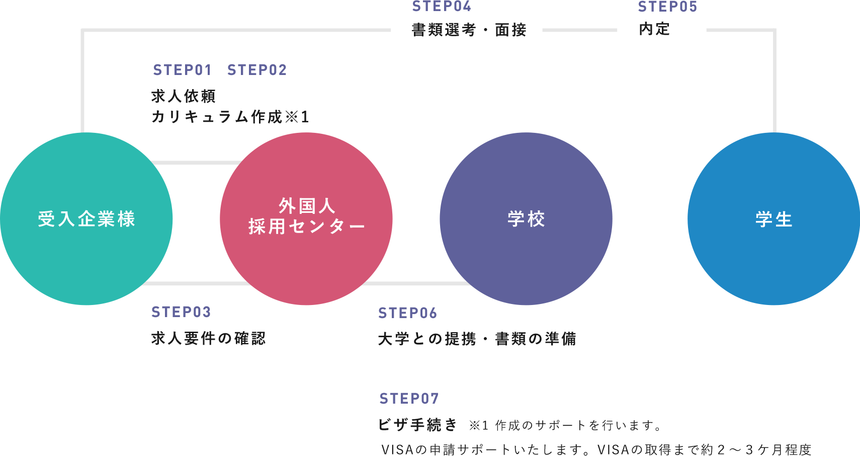 日本の企業が海外の大学生を日本に呼び寄せ、インターンシップを行わせたい場合には、大学と会社との協定が必要となります。大学との協定がない場合は、大学生をインターン生として呼び寄せることはできません。